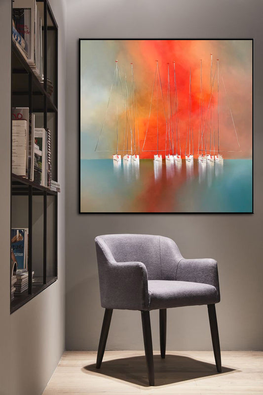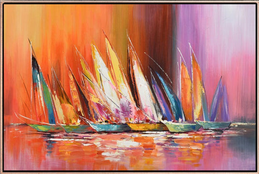 304 Farverigt maleri - Sejlbåde